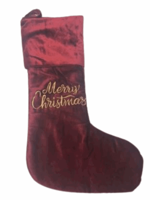 Julestrømpe rød velour 45cm. Vi broderer navn for et mere personlig preg.