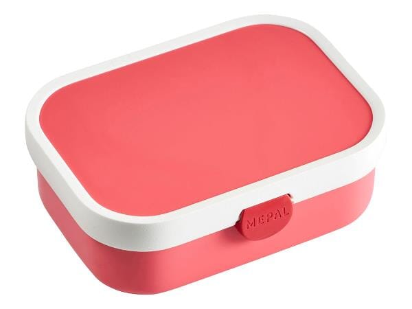 Matboksen måler 17,5 x 13 x 6 cm og inneholder en liten gaffel og et avtagbart innlegg med to små rom.Matboks inds. Campus pink Mepa
